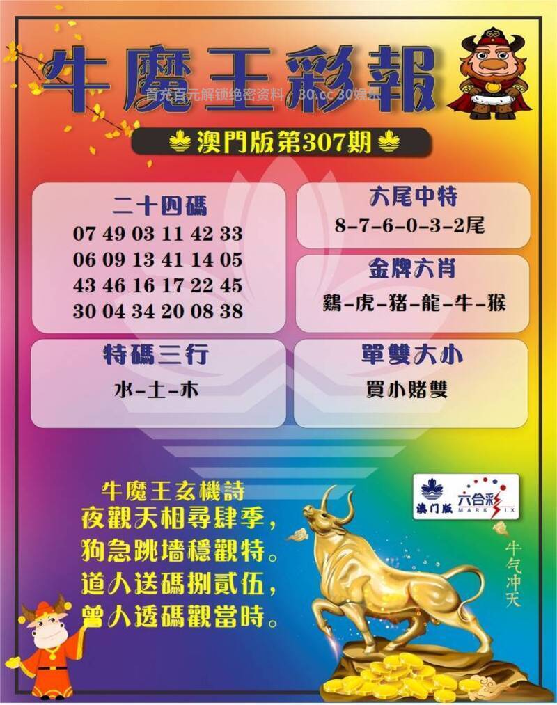 306期:七肖中特【鼠猪鸡狗牛龙羊】开:牛17中